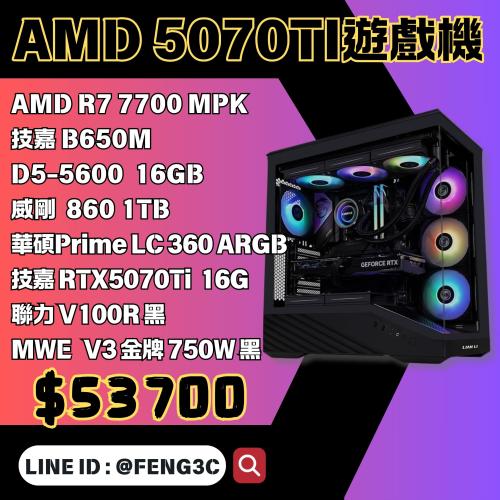 AMD 5070TI遊戲機 AMD R7 7700+RTX5070Ti 16G