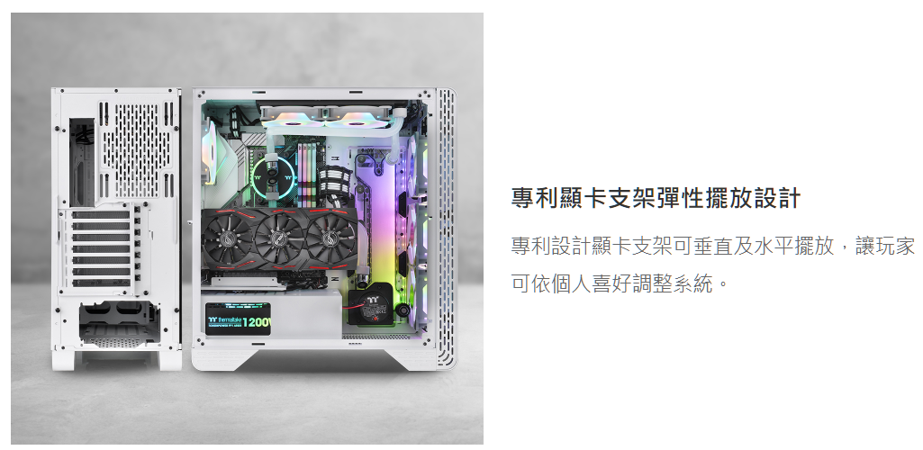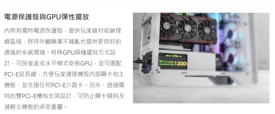 ◆ 輕巧、時尚、現代感. ◆ 電源保護殼與GPU彈性擺放 ◆ 專利顯卡支架彈性擺放設計