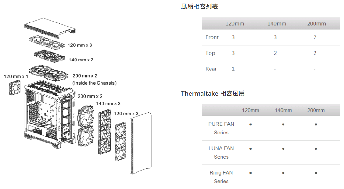 3 x 120mm, 2 x 140mm, 2 x 200mm