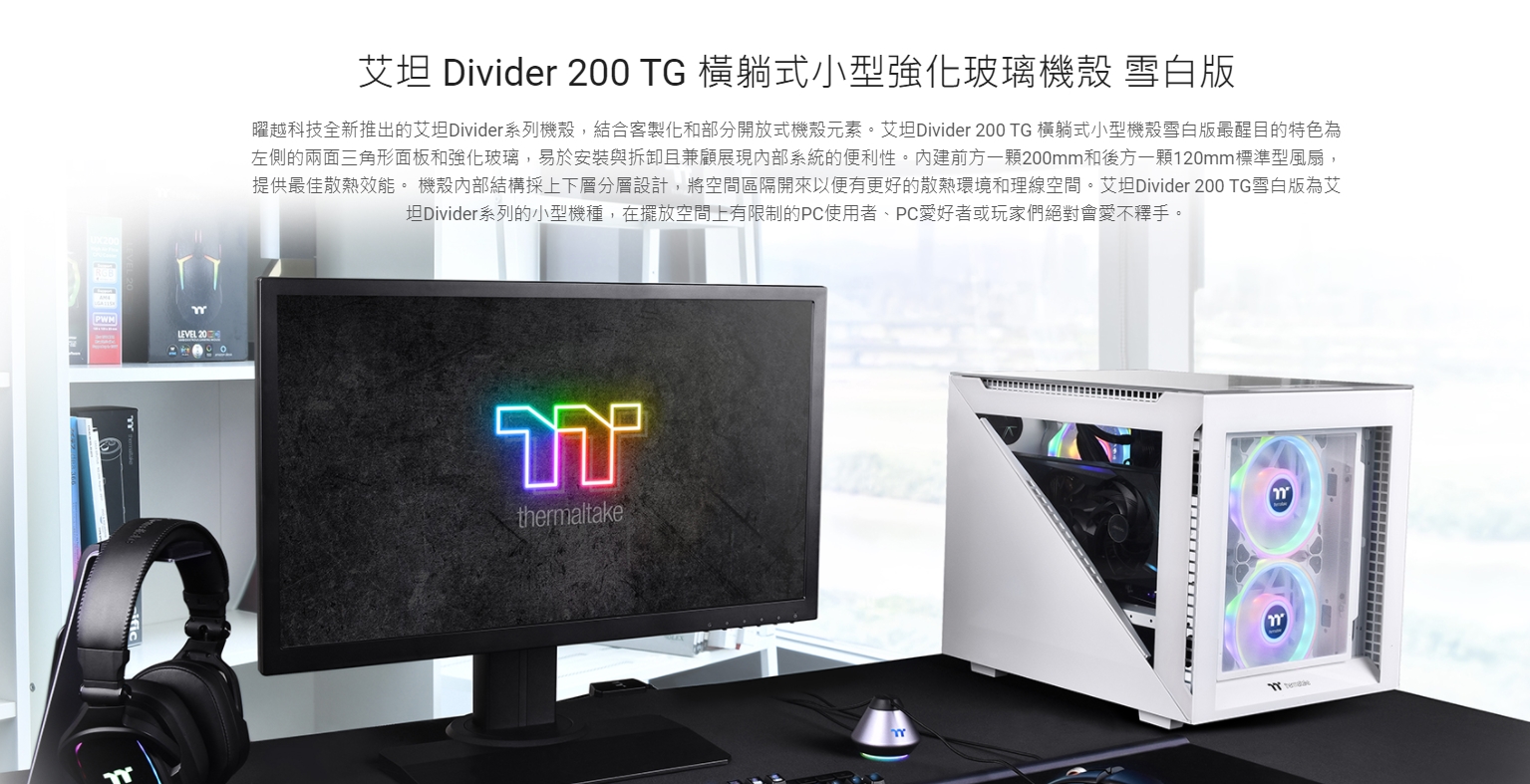 Thermaltake 曜越 艾坦 Divider 200 TG 橫躺式小型強化玻璃機殼 黑/白