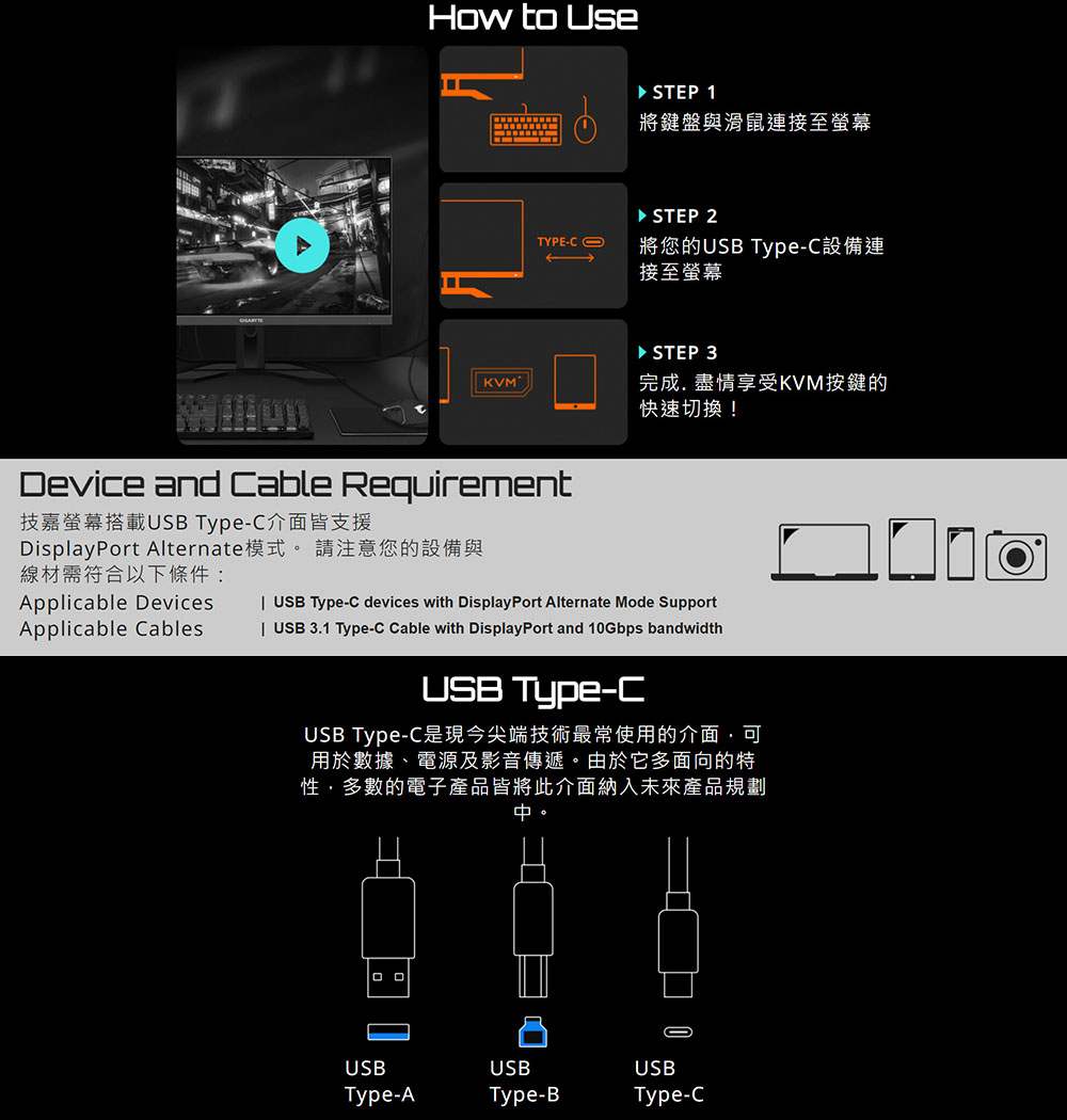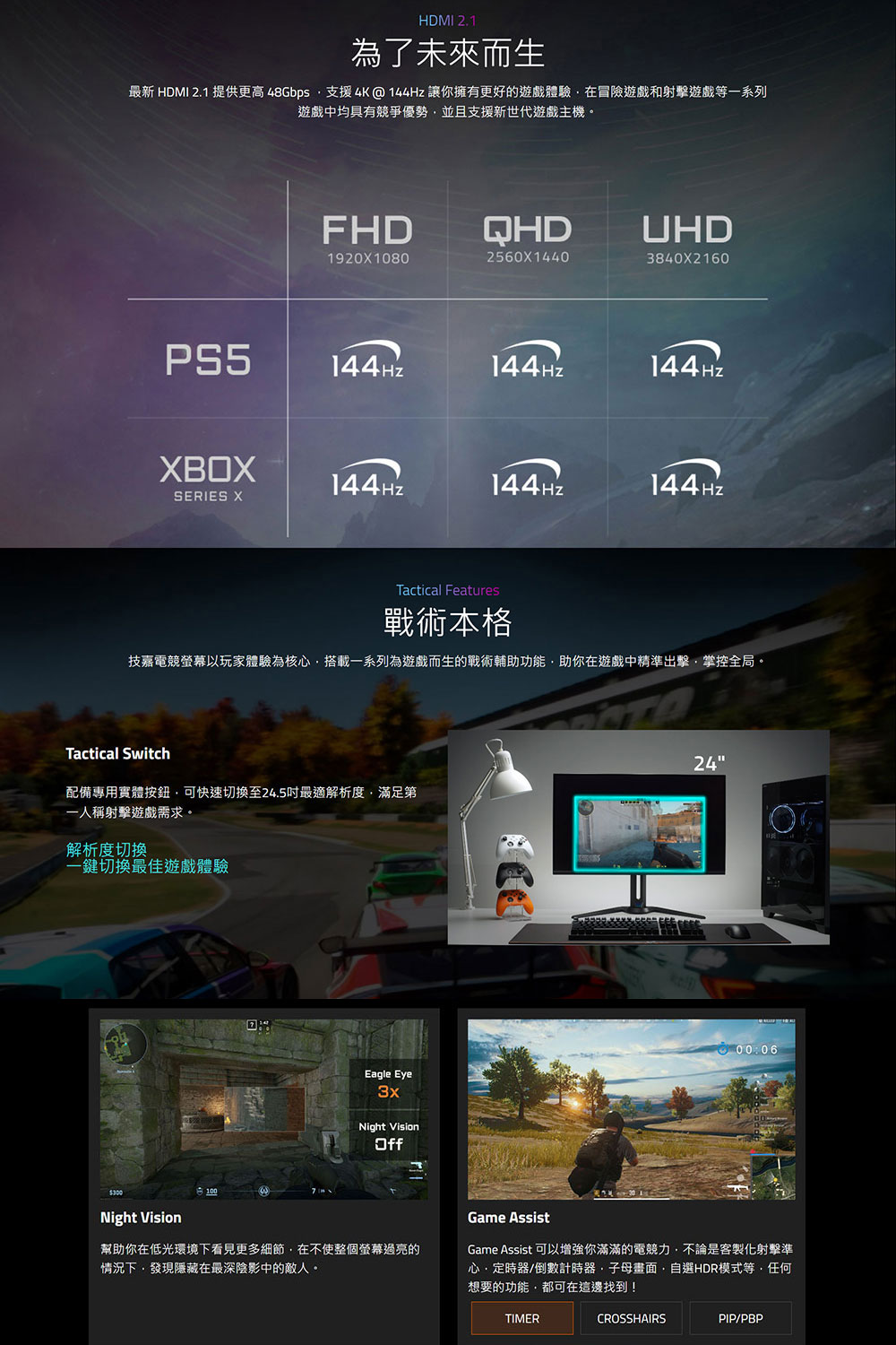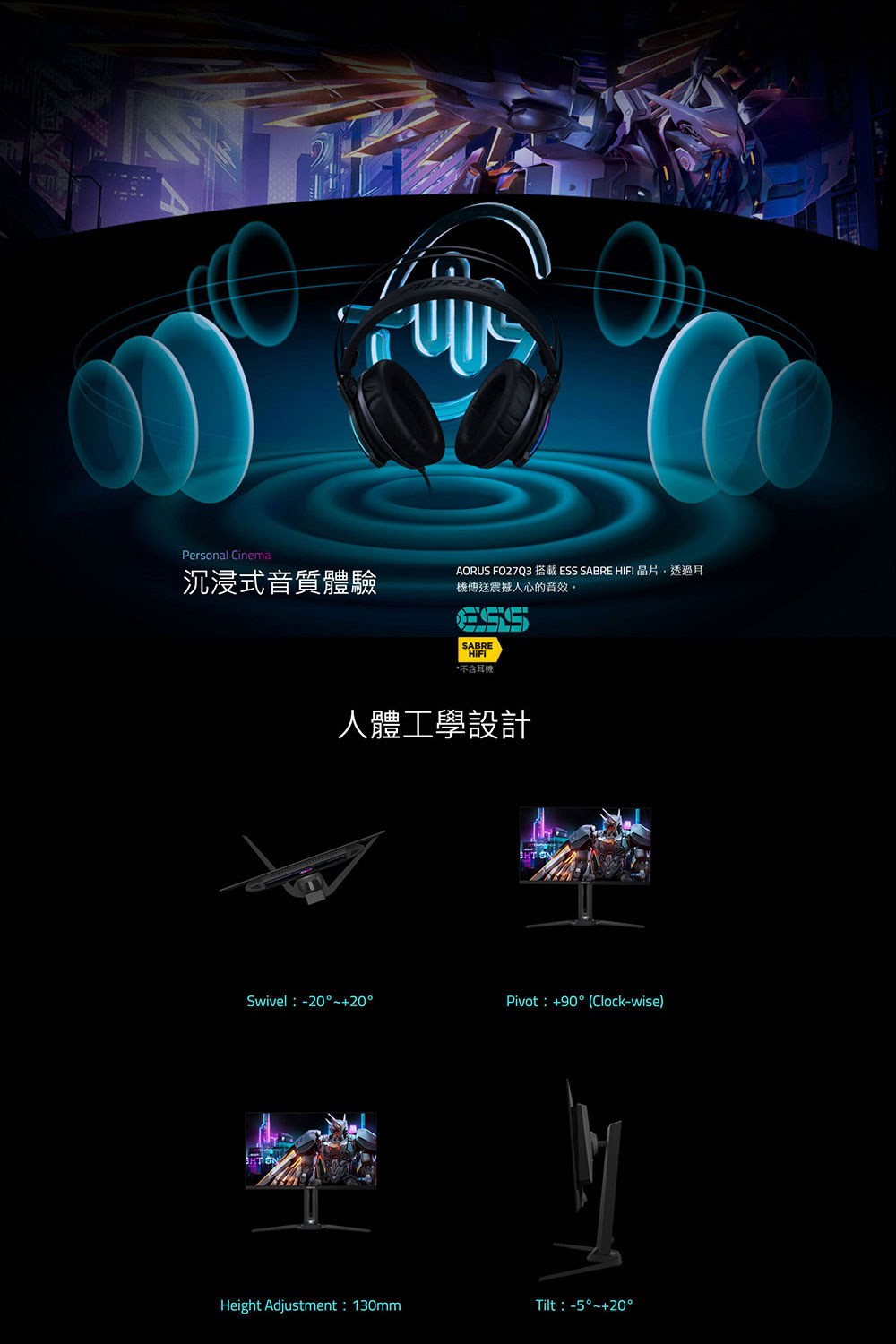 QD-OLED 面板 360Hz更新0.03ms反應 2560x1440 (QHD) HDMI/DP/USB-C介面 內建KVM切換器,可多重用戶端