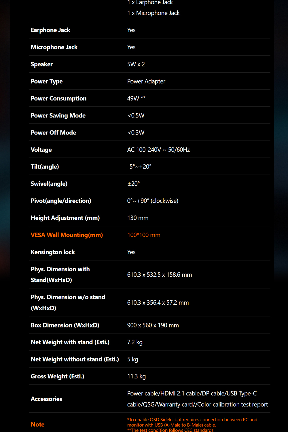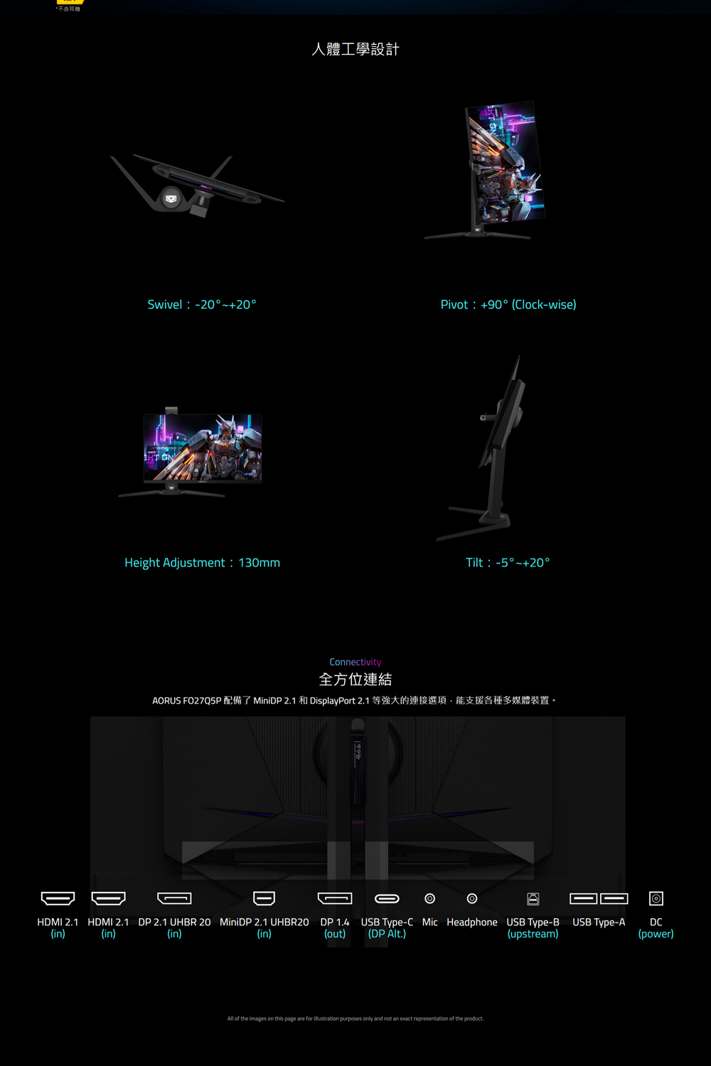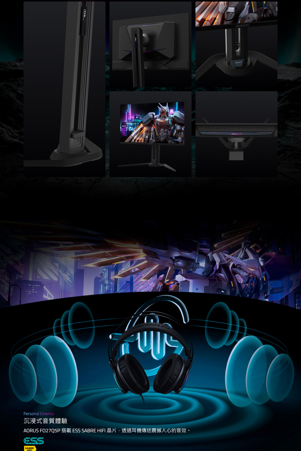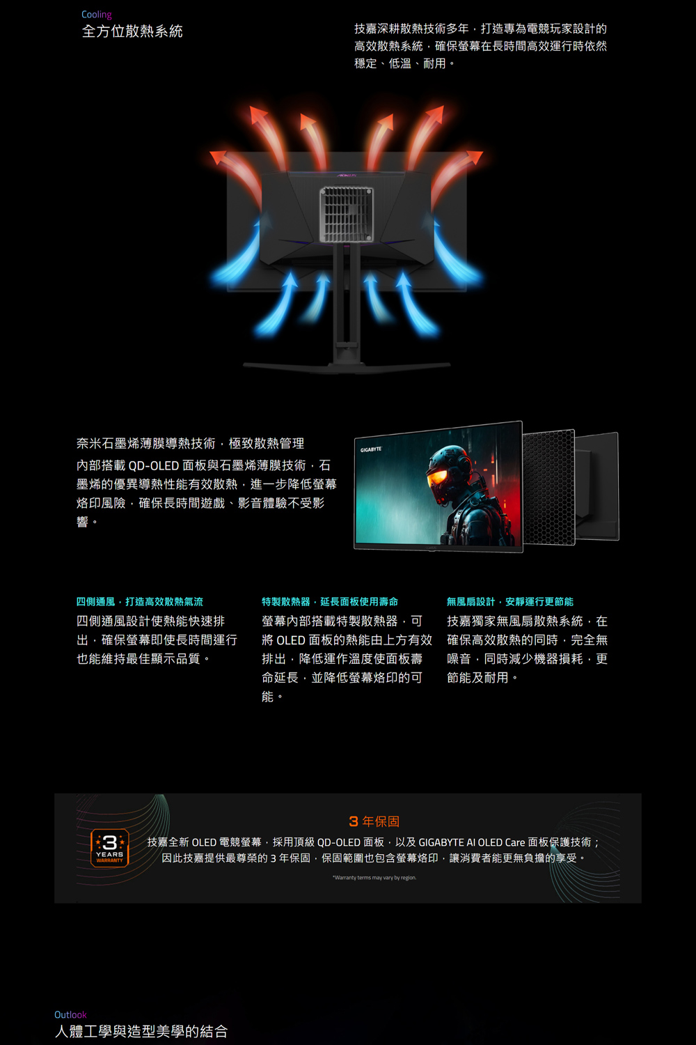 27 吋 QD-OLED面板 2560x1440(QHD) 500Hz 更新率 0.03ms 反應時間 全方位散熱系統