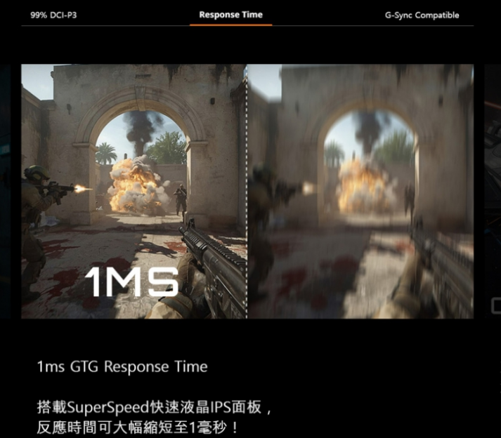 | 真實反應時間(Tr+Tf ) | 1ms GTG |