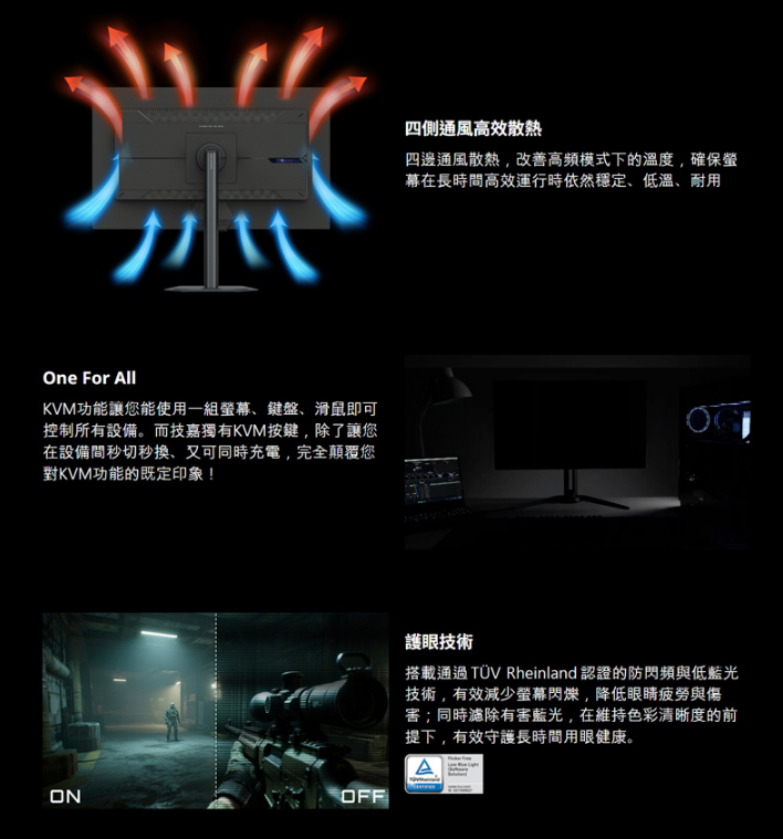 搭載通過 TÜV Rheinland 認證的防閃頻與低藍光技術
