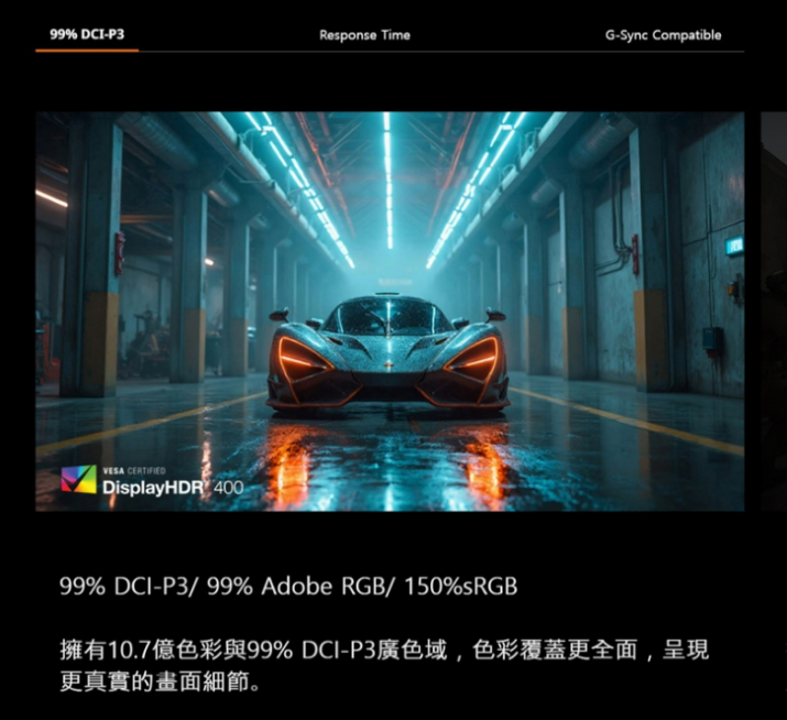 | 色域表現: | 99% DCI-P3 / sRGB 150% |