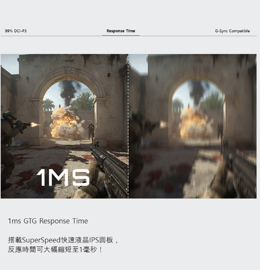 | 真實反應時間(Tr+Tf ) | 1ms GTG |