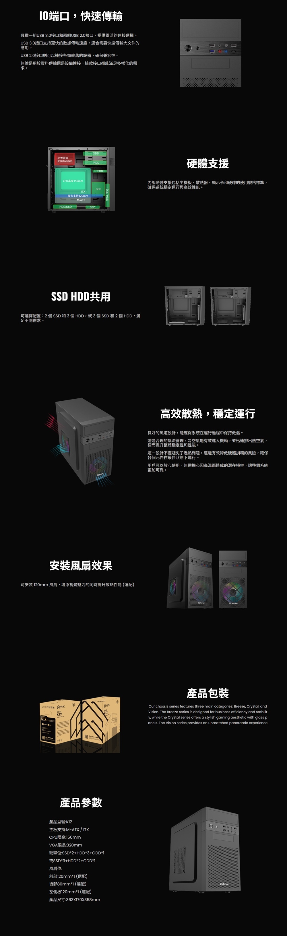 主板支持:M-ATX/ ITX CPU限高:150mm VGA限長:320mm 風扇位:前、後、左(可選配)