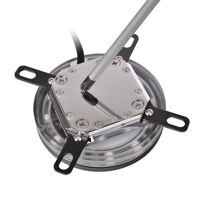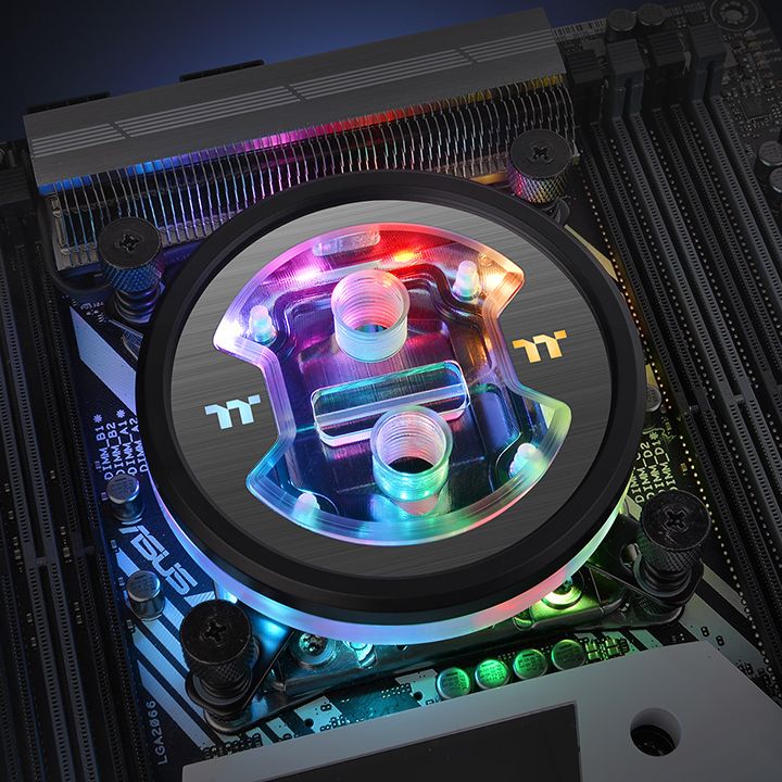 W7 Plus CPU水冷頭採純銅底,經防腐蝕鍍鎳處理,搭配細密鰭片0.15mm微流道結構以及內建溫度感測器,提供穩定高效冷卻品質。其支援TT RGB Plus軟體,綻放1680萬炫彩光芒。
