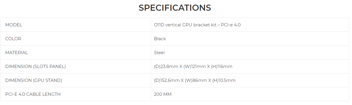 適用於PC-O11D/AIR 機殼 With 200mm long PCI-e 4.0 X16 riser cable and 4 expansion slots