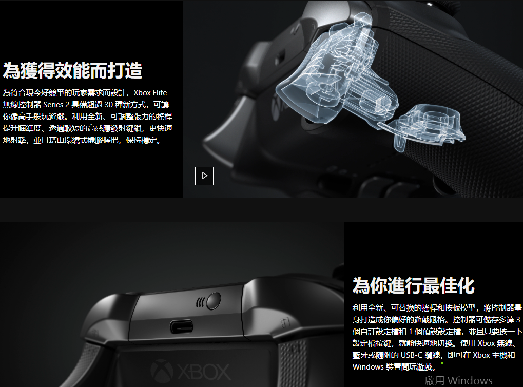 為符合現今好競爭的玩家需求而設計,Xbox Elite 無線控制器 Series 2 具備超過 30 種新方式,可讓你像高手般玩遊戲。利用全新、可調整張力的搖桿提升瞄準度、透過較短的高感應發射鍵鎖,更快速地射擊,並且藉由環繞式橡膠握把,保持穩定。