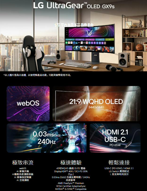 240Hz 高更新率 webOS 24內建系統 獨特L型支架