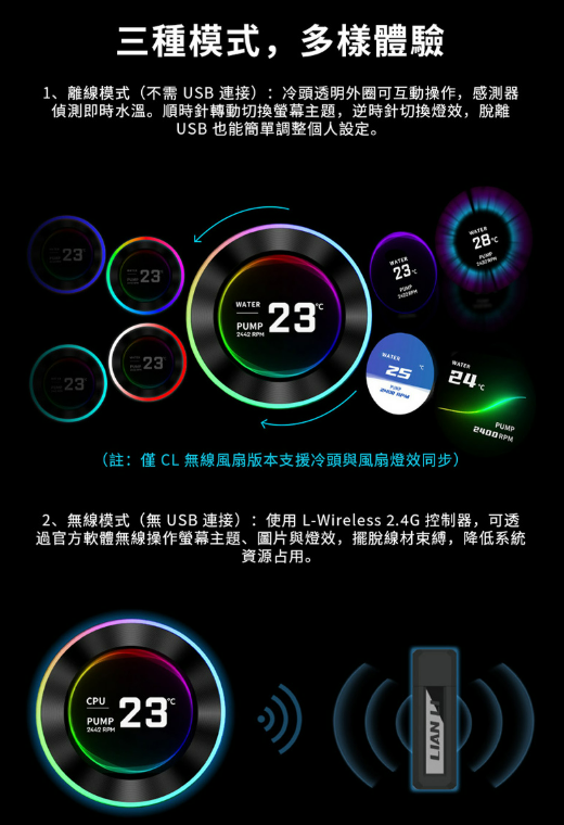 ◆RGB:L-CONNECT 3 via USB / 內附 L-Wireless 控制器