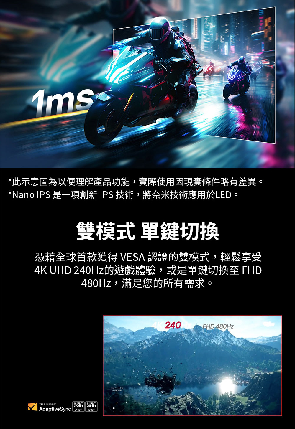 4K UHD Nano-IPS 雙模式單鍵切換 快速切換 多工處理