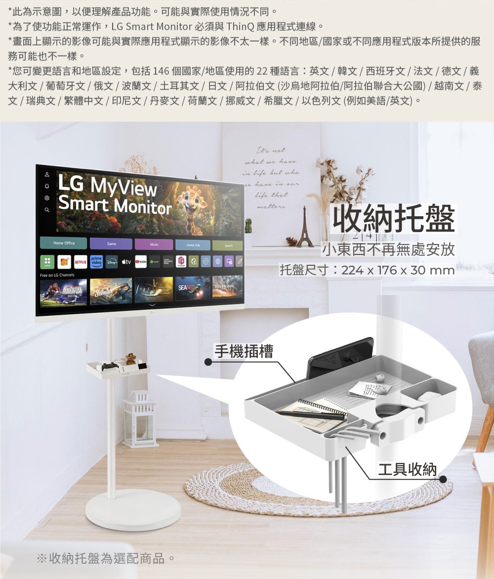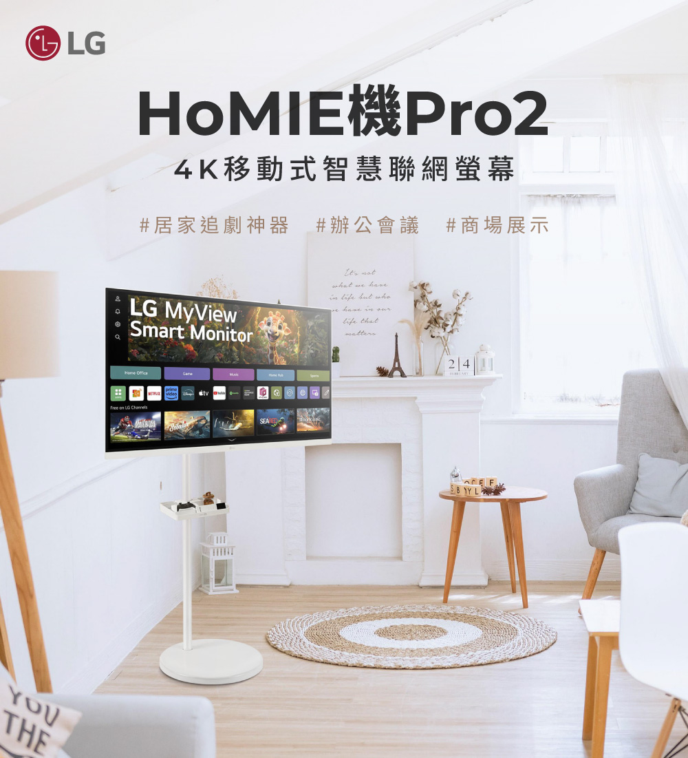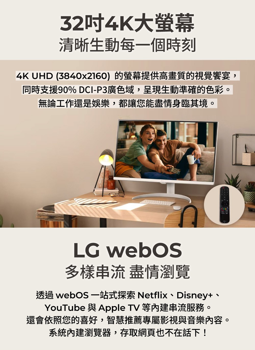 3840x2160 智慧螢幕 webOS 智慧型螢幕 IoT操控家電/支援智慧遙控器 纖薄設計與傾斜 高度可調式支架