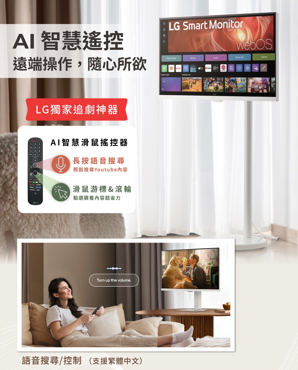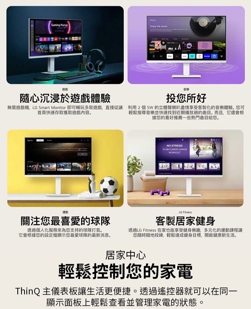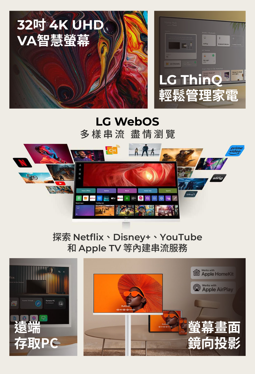 3840x2160 智慧螢幕 webOS 智慧型螢幕 IoT操控家電/支援智慧遙控器 纖薄設計與傾斜 高度可調式支架
